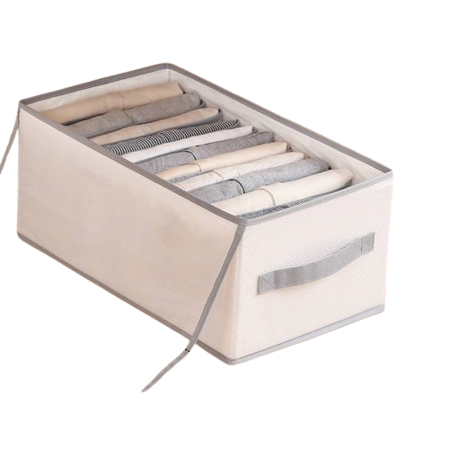 The SM4U clothes organizer features 9 spacious compartments designed to keep jeans, long-sleeve shirts, sweaters, and daily wear neatly arranged. Made from thick, durable fabric with a top cover to protect your clothes from dust, ensuring everything stays clean and well-folded.