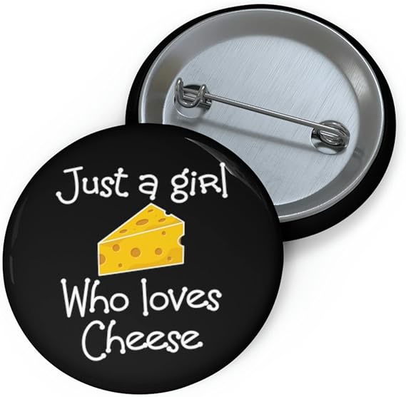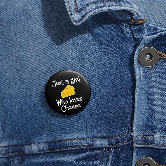 Funny Pinback Button Pin Badge Saying A Girl who Loves Cheese Women Daughter Novelty Wife Husband Mom Father