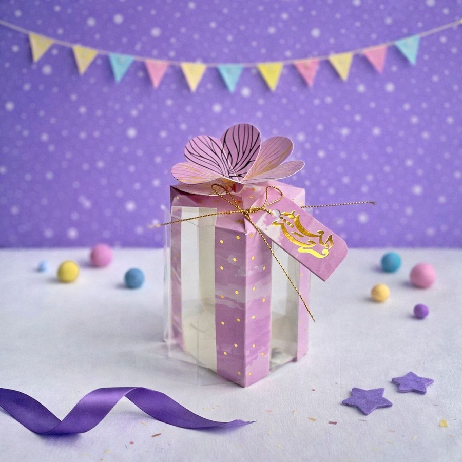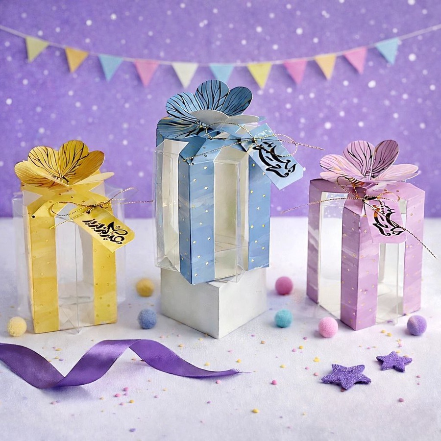 3 بوكس وردة ببوكس شفاف وطباعة بصمة توزيعات عيد مميزة 🎉✨