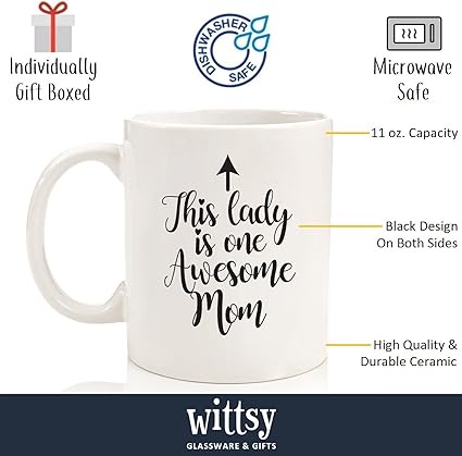 منتجات عيد الامOne Awesome Mom Funny Coffee Mug - Best Mothers Day Gifts for Mom, Women - Unique Mom Gifts from Daughter, Son, Kids, Husband - Cool Bday Present Idea for New Mom, Wife, Her - Novelty Mom Mug, Cup