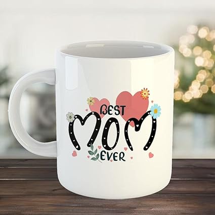 Printed Ceramic Coffee Mug, Mothers Day Gift for Mother, Best Mom Ever Floral(11Oz)