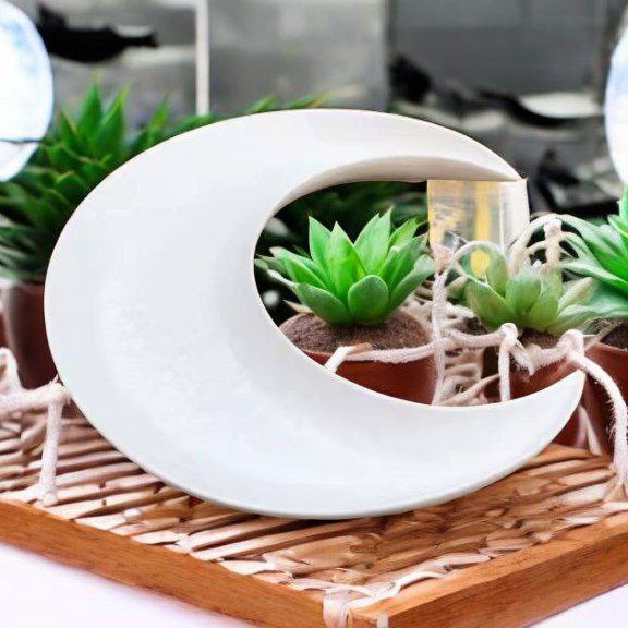 هلال مصنوع من البورسلين عالي الجودة بلون أبيض ناعم وتصميم بسيط يعكس جمال وروحانية شهر رمضان. يمكن تنسيقه بسهولة مع مختلف أنماط الديكور ليضفي أجواء دافئة ومميزة على طاولة السفرة، ركن الضيافة أو مدخل المنزل. قطعة أنيقة تناسب أجواء التجمعات الرمضانية وتكمل ديكور الشهر الكريم بذوق راقٍ.