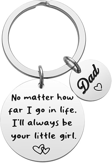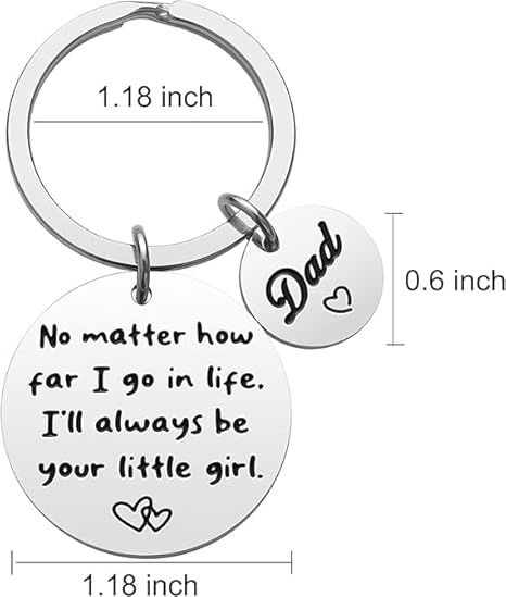 This heartfelt keychain gift is the perfect gift for dad from daughter on occasions like Father's Day, Birthdays, Christmas or Valentine's Day. The double-sided engraved words express a touching feeling - on one side it reads "No matter how far I go in life, I'll always be your little girl" with a heart symbol, while the other side simply says "Best Dad Ever". This keychain is carefully crafted, allows the daughter to convey her love and appreciation to her father in a meaningful way.The elegant silver design gives her a timeless look that any father is proud to hold. Whether you are near or far, this keychain serves as a constant reminder of the special relationship between father and daughter.