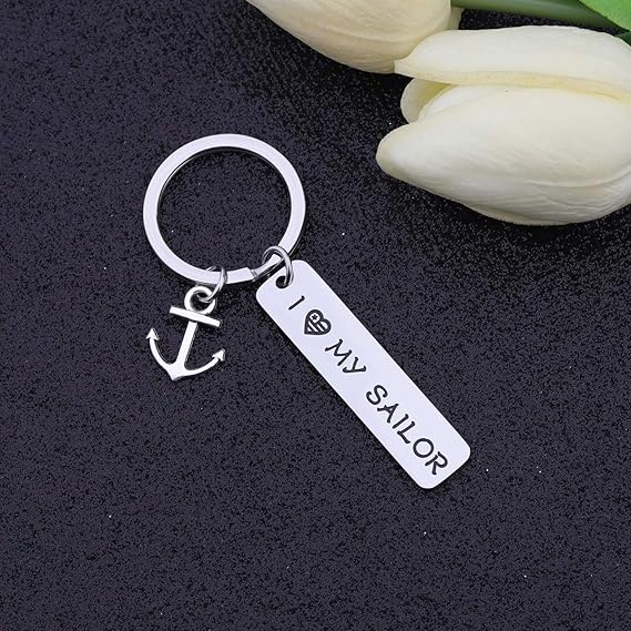 Show your love for sailing with this keychain that has a small simple anchor stamped and also the note: "I love my sailor".The anchor is the perfect reminder of whose love of the water like sailor or swimmer.
