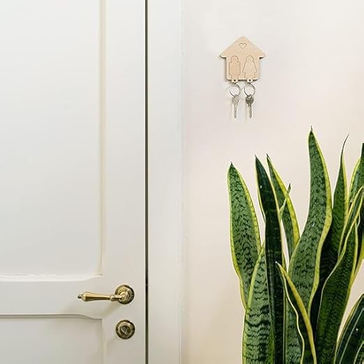 Gifticious Wooden Couple Key Holder - Wall Mounted House Shaped Key Organizer with His and Hers Keychains - Perfect for Couples, Newlyweds, and Home Decor - Black Horse