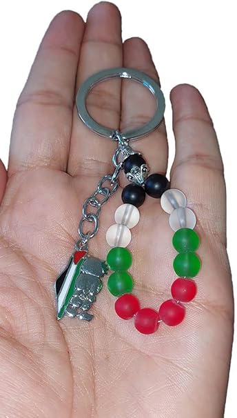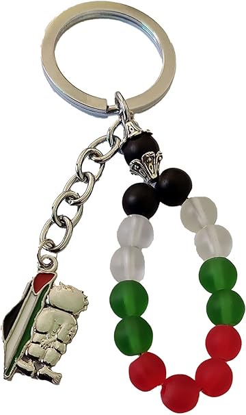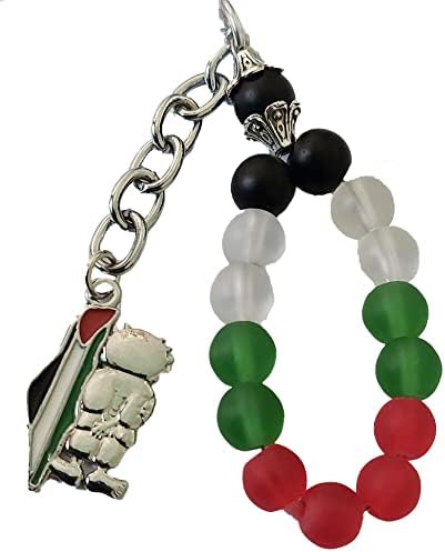 Palestine colored beads design Flag with Palestine metal Map Handala keychain keyring