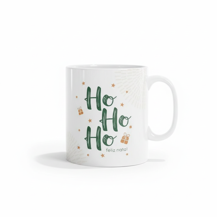 A festive Christmas mug featuring a cheerful “Ho Ho Ho” design with star and gift illustrations. Made from high-quality materials and perfect for hot beverages like coffee, tea, or hot chocolate. The durable print ensures long-lasting colors, making it an ideal holiday gift or a decorative seasonal piece. Adds warmth and joy to your festive celebrations.