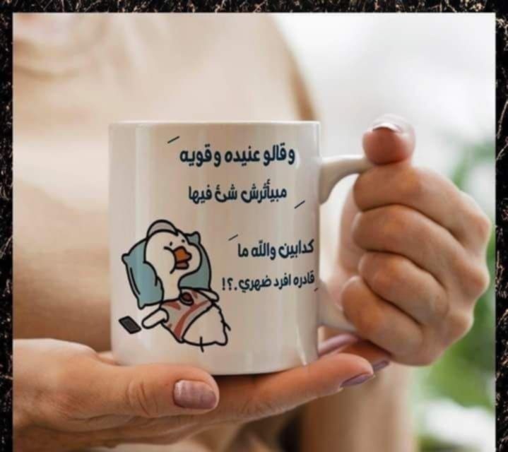 A hilarious and cute mug featuring a popular Arabic quote and an adorable cartoon illustration—perfect for adding humor to your daily coffee or tea routine. Made from high-quality ceramic with durable printing, making it great for home, office use, or as a fun gift for friends and family.