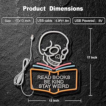 لوحة نيون مضيئة بتصميم Read Books Be Kind Stay Weird – تعمل بوصلة USB ✨💡
