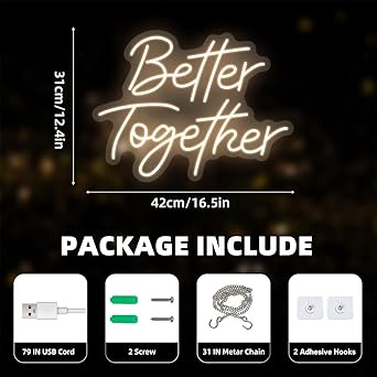 لوحة نيون مضيئة بتصميم Better Together – تعمل بوصلة USB ✨💡