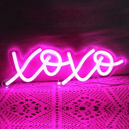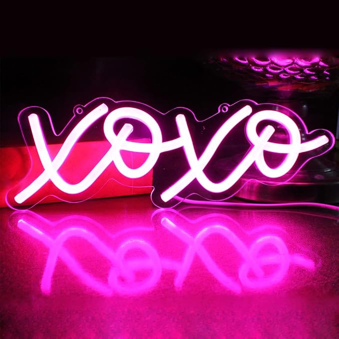لوحة نيون مضيئة بتصميم XOXO Pink – تعمل بوصلة USB ✨💡