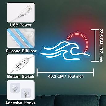 لوحة نيون مضيئة بتصميم Wave – تعمل بوصلة USB ✨💡