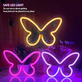 لوحة نيون مضيئة بتصميم 3Pcs Butterfly – تعمل بوصلة USB ✨💡