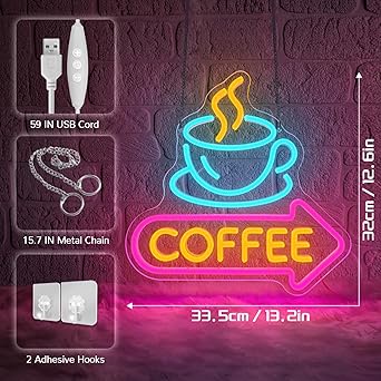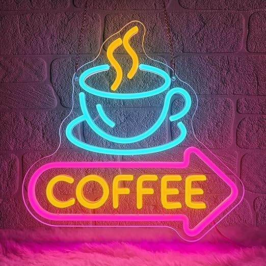 لوحة نيون مضيئة بتصميم Coffee – تعمل بوصلة USB ✨💡