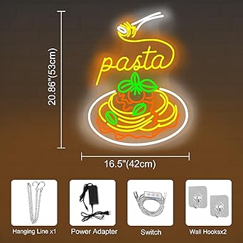 لوحة نيون مضيئة بتصميم Pasta – تعمل بوصلة USB ✨💡