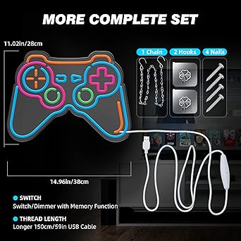 لوحة نيون مضيئة بتصميم Gaming – تعمل بوصلة USB ✨💡