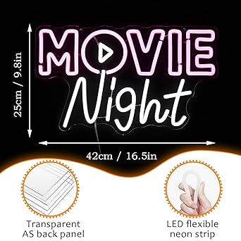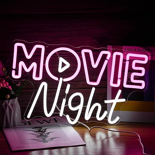 لوحة نيون مضيئة بتصميم Movie Night – تعمل بوصلة USB ✨💡