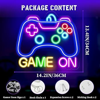 لوحة نيون مضيئة بتصميم Game On– تعمل بوصلة USB ✨💡