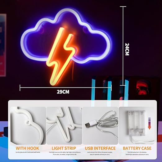 لوحة نيون مضيئة بتصميم Blue Cloud and Yellow Flash – تعمل بوصلة USB ✨💡