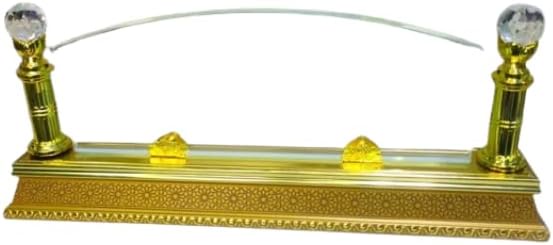 Elevate your professional office with this luxurious gold-tone metal nameplate holder featuring elegant crystal accents. This stylish holder boasts a classic design with intricately engraved bases and elegant columns adorned with sparkling crystal balls at the top. The gracefully curved arch perfectly supports the nameplate for optimal display. Ideal for executive offices, reception desks, and special events, it can be personalized with engraving and printing services. The robust design and high-quality finish ensure a lasting, professional look. This holder is designed to be a practical and stylish office décor piece that adds a touch of luxury and professionalism to your workspace.