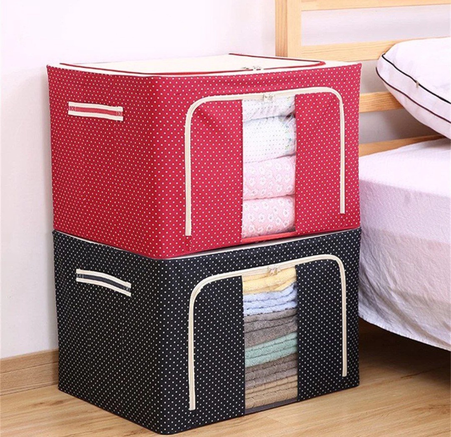 The reinforced frame ensures the box maintains its shape even when fully loaded, while the dust-proof and moisture-resistant material keeps your items clean and protected. When not in use, the box can be folded flat to save space. With its elegant dotted pattern, it blends seamlessly with any room décor, offering both function and style.