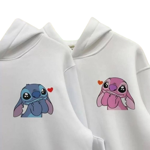 A charming hoodie set designed for couples, featuring adorable cartoon characters printed on the front—one in blue and the other in pink, each with a small red heart for a sweet, playful touch. Made from soft and cozy fabric, these hoodies offer comfort, warmth, and a stylish matching look. Perfect for outings, gifts, or cozy moments together.