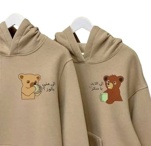 Couple Hoodie Set with Arabic Love Quotes & Cute Bear Print