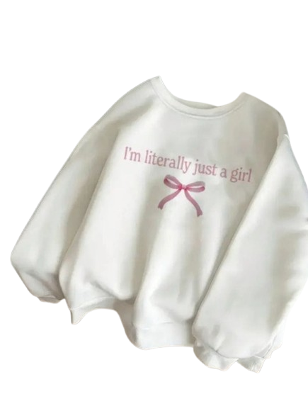 Add a soft and feminine touch to your everyday style with this cute and cozy sweatshirt featuring the printed phrase “I’m literally just a girl” and a pink bow design. Made for comfort, this oversized pullover comes in a soft white color and is perfect for daily wear—whether you’re at home, on campus, running errands, or hanging out with friends.