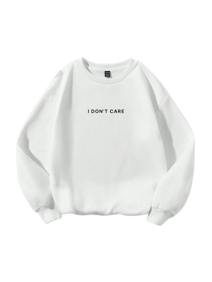 Keep your style simple, bold, and effortlessly cool with this minimalist graphic sweatshirt featuring the phrase “I DON’T CARE.” Designed in a clean white color with a modern, understated print, this pullover is perfect for those who love a chic yet casual look.