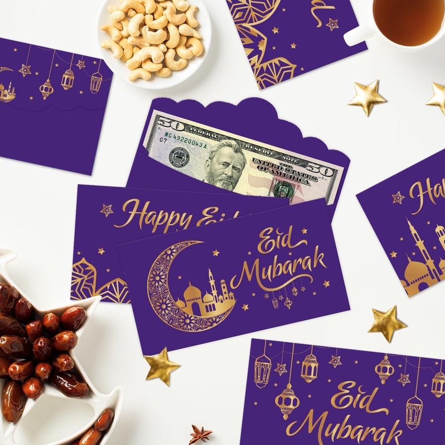 24 اظرف عيدية لون بنفسجي بتصميم مبهج 🎉💸