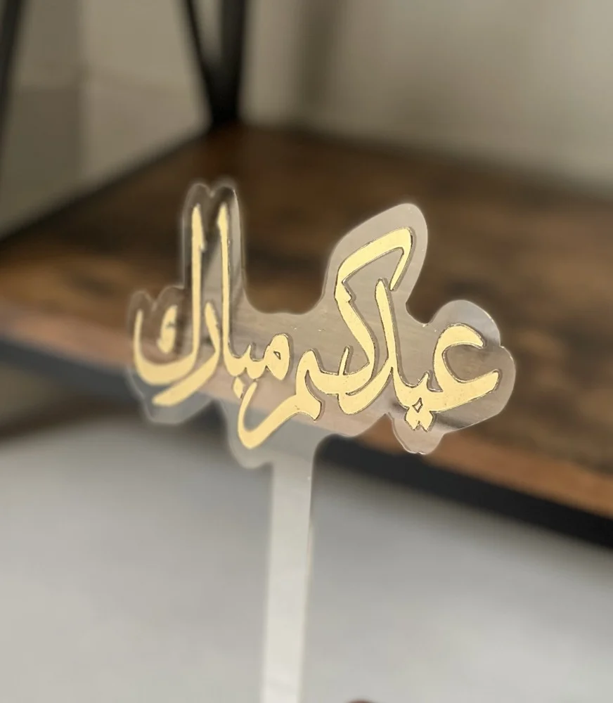 توبر كيك مصنوع من الأكريليك الشفاف بتفاصيل ذهبية أنيقة مكتوب عليه “عيدكم مبارك”، يضيف لمسة فخامة وجمال لطاولة العيد. مثالي لتزيين الكيك والحلويات في تجمعات العيد ويكمل أجواء الاحتفال بذوق راقٍ.