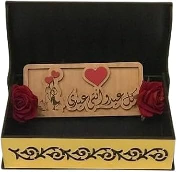 علبة هدية خشبية بعبارة "كل عيد وأنتِ حبيبة عمري" 🎉💸