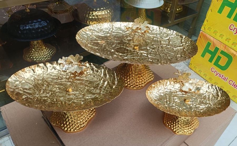 3 اطقم أطباق معدن تقديم ذهبي فاخر للعيد 😍 ✨