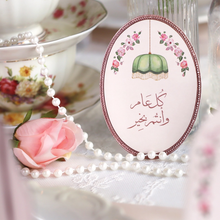 كارت ضيافة بتصميم كلاسيك أنيق مكتوب عليه "كل عام وأنتم بخير"، مناسب لتزيين سفرة العيد أو التقديم في التجمعات العائلية.